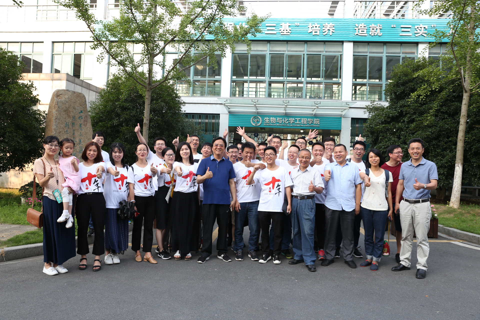 6月16日,生化学院材料04级同学毕业十年返校,校党委委员、生化学院党委书记毛建卫教授,生化学院院长王永江教授、副书记程海丰老师向同学们介绍了生化学院办学发展成果,材料系系主任朱银邦博士、牛俊峰博士,基础化学部主任姜华昌博士,校友办郑非老师等老师与校友们进行了交流,毛老师陪同校友参观了浙江省农产品化学与生物加工技术重点实验室和生化学院大楼。