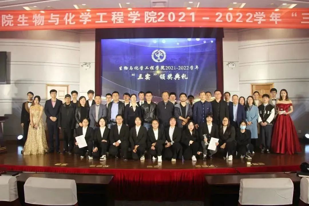“三实”颁奖典礼圆满结束,这次典礼既有严肃庄重的颁奖表彰,亦有青春活力的激情碰撞,体现了生化师生积极向上,争先奋进的精神面貌与励精图治,志存高远的伟大抱负。获奖同学的优秀事迹与出色成果得到了在场企业家及师生的高度赞扬与肯定。“做人实在,做事实干,做学问实用”的“三实”精神已经深深地烙印在所有生化人的心中,与会企业家纷纷表示将继续对我院的发展给予支持并进一步深化合作。晚会虽已落幕,但“三实”精神永远闪耀。相信在校院党委行政班子的领导下, 全体生化人定将不忘初心、牢记使命,齐心协力为生化学院续写华章,再创辉煌未来!