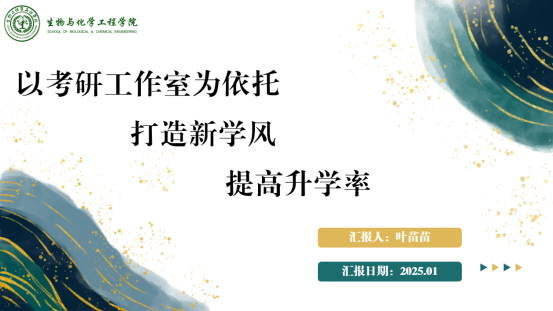 2021级本科生辅导员叶苗苗围绕学工品牌建设,推动就业工作提升为主题进行了汇报。她以三实升华考研工作室为依托,融合学院“三实”文化和育人特色,打造“四强四做”品牌,通过生化学院“研”途协会,致力于打造新学风,提高升学率。