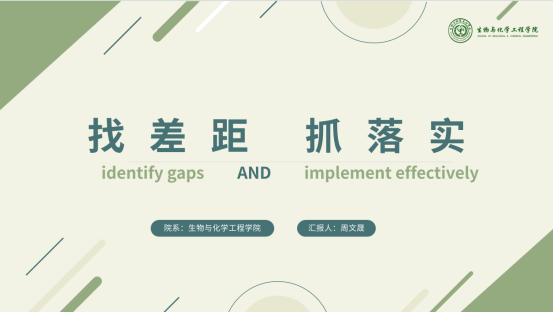 为更好地促进学院学生工作实效,提升个人工作能力水平,随后,全体辅导员围绕“以高质量学生工作助力生化类高水平人才培养”主题,聚焦学科建设和学院思政育人工作实践,以及辅导员队伍“四个一”工作体系,进行了专项汇报。