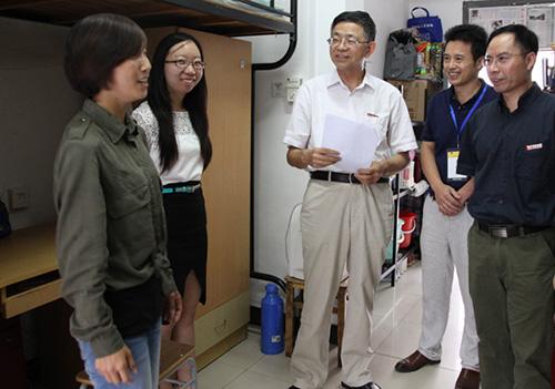 当天下午,校党委书记王建华、校长叶高翔、副校长赵东福等到寝室走访、看望我院研究生新生。校领导与研究生亲切交谈,介绍学校办学历史和办学特色,了解他们到校后的感受。校领导说,学校风景优美,曾被张德江委员长称为“读书做学问的好地方”。学校会竭力创造更好的成才环境,希望新同学尽快融入浙江科技学院大家庭,完成角色转变,潜心求学,努力钻研,不断提升自己的科研能力和学术水平。