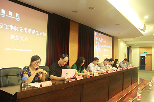 大会初始,院长刘士旺教授为换届会议致辞。在讲话中,他对生化/轻工学院的学生工作和团学工作做出了高度的评价。他认为一个集体需要注入新鲜血液才能壮大;一个学生干部需要德才兼备,做到仰望天空、脚踏实地,才能让自己变得更优秀。党总支书记范伟刚老师着重讲了价值观的落实,希望当代新选举的学生干部拥有正确的价值观,结合生化/轻工的优良传统,将学生工作做得更出色。校学生会主席何清清表示在未来的日子里,校会与二级学院学生会能更好地合作,为全校学生一起办实事办好事。