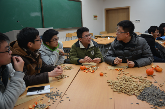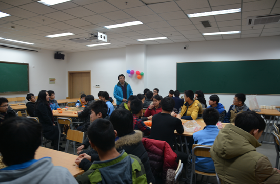2015年1月15日,晚间六点于中德楼B-308教室,生化/轻工学院的刘赫扬、杨瑞芹、俞远志等七位化工导师携部分优秀高年级学子来到安吉校区,同化工团队新成员举行第一次化工导师团队见面会,简要介绍导师专业方向,共同探讨关于化工团队的课题及专业规划。