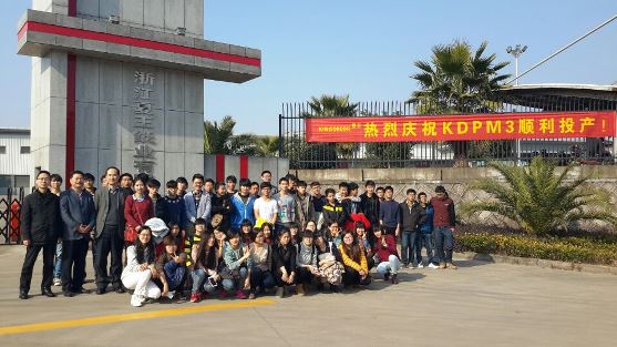 我们参观的第二站是浙江仙鹤特种纸有限公司和浙江夏王纸业有限公司,仙鹤特种纸有限公司是目前中国规模最大、设备最先进的特种纸生产企业,而夏王纸业有限公司是仙鹤特种纸有限公司与德国夏特公司合资成立专门生产装饰原纸的企业,两家先进的企业只有一路之隔。夏王纸业生产的装饰原纸广泛用于家具、木地板、防火板的生产,市场份额占全国的1/3,并出口欧美发达国家。公司新安装的3号机大多采用进口设备,生产工艺先进,正好于1月23日调试完毕,24日整体开机,所以我们有幸成为第一批参观的客人,参观了装饰原纸的整个制造过程。仙鹤特种纸有限公司的产品种类很多,公司高层特意安排我们参观了一种高技术含量的特种纸---不锈钢衬纸的先进生产过程,这是一种为了防止不锈钢板之间的摩擦而插入的一种专用纸,主要用于冷轧高档不锈钢板的卷取过程。原来我们早就知道公司的董事长王敏良先生是我们学校轻化工程专业的老校友,但亲眼看到他的大手笔,又亲身感受到他对我们这批小学弟学妹的厚爱,钦佩、自豪、感激之情油然而生。