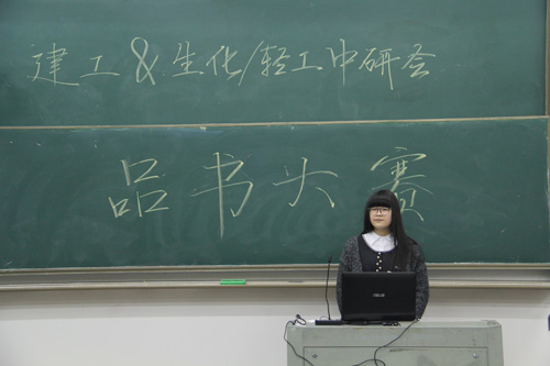 带着对文学的热爱,对知识的渴望和对书籍的独特感受,生化/轻工学院、建工学院中研会联合举办的“修身杯”品书大赛初赛于2015年3月20日晚上6点在B4-102正式拉开帷幕。徐舒萍、叶慧、吴建军、赵鑫等优秀学生代表作为评委出席此次大赛。