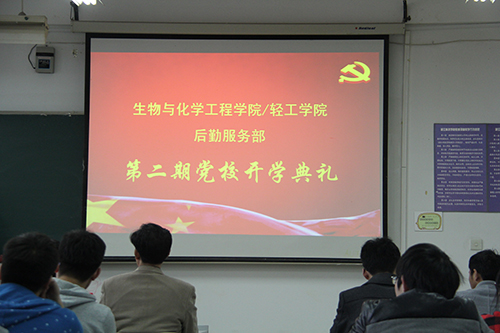 2015年4月11日晚17点30分,生化轻工学院第二期党校开学典礼隆重举行。出席典礼的有正校级巡视员原校党委副书记胡浙平老师,校后勤服务部副总经理林洪清老师,生化轻工学院党总支副书记葛龙威等老师。