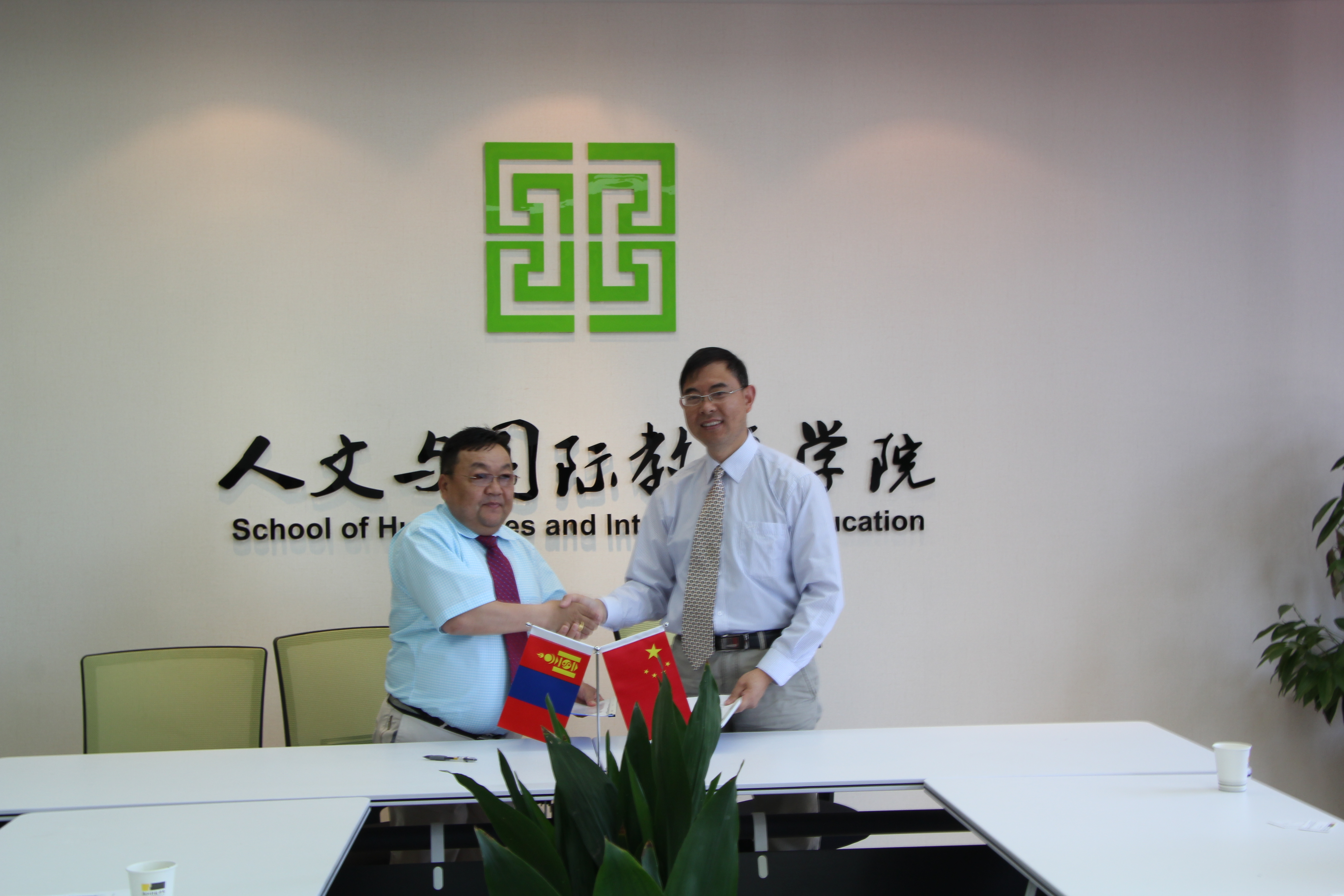 2015年5月12日,蒙古国立农业大学工程技术学院院长恩克巴雅尔·功奇格道奇(Mr. Enkhbayar Gonchigdorj)一行来我院交流考察。我院刘士旺院长与Mr. Enkhbayar Gonchigdorj在学科专业、人员互访、学生培养、学术交流等方面进行了交流,双方在推动师生交流、短期项目及科研合作方面签约了“2+2、2+3”等留学生领域的境外办学项目合作备忘录,我院王立军副院长、王宏鹏博士等参与了双方合作会议与考察交流,Mr. Enkhbayar Gonchigdorj等参观考察了我院省重点实验室、2011协同创新中心等科研成果。