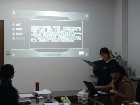2015年1月6日,学院学术委员会对学生申报的项目逐一展开了公开、公正、公平的评比,每个项目负责人都对自己的项目进行了PPT展示,从项目背景、创新性、可行性、实验条件等多个方面展开论述,学术委员会的老师们详细阅读了各项目申报书,认真聆听了各负责人的汇报,逐一对各项目进行打分,历时4个多小时形成最终的评比结果,并于当天公示于生化/轻工学院C2六楼公告栏内。