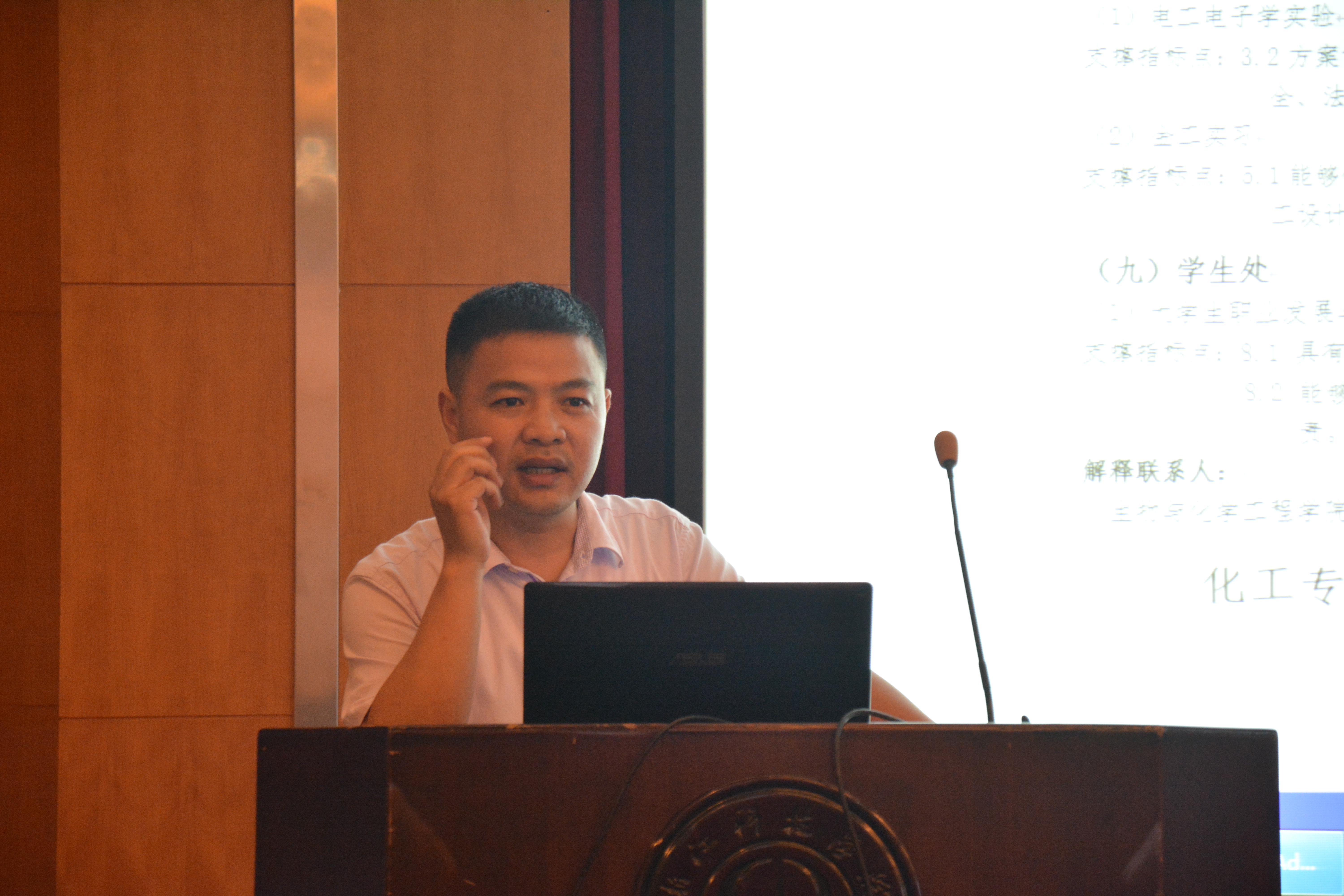 教务处罗朝盛处长首先介绍了工程教育专业认证的背景和目的。罗处长指出,工程教育专业认证是根据华盛顿协议、按照国际通行的工程教育质量保障制度,是实现工程教育国际互认和工程师资格国际互认的重要标准。工程教育专业认证以学生为中心、成果产出导向和持续改进为理念,核心就是要确认工科专业毕业生达到国际认可的质量标准要求,是一种以培养目标和毕业出口要求为评价,工程专业认证是我们学校学科发展和增强国际交流合作的重要环节。