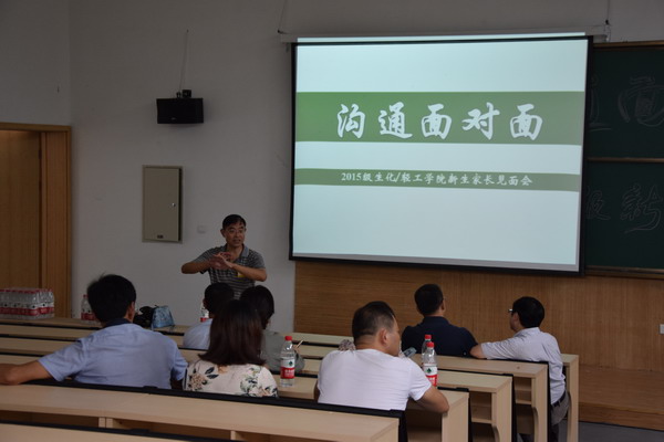 为了加深学院与家长间的相互了解,同时让学生家长更全面地了解孩子们的大学生活,中午1点学院在教学楼阶梯教室召开了新生家长见面会,与新生家长开展了面对面的交流。刘士旺院长、范伟刚书记和葛龙威副书记分别介绍了学院发展概况、专业建设情况、学科和研究生、人才培养成就、大学生能力培养途径等,并强调安吉优美的山水风光和生化/轻工学院优良的学术氛围,定将给学生们塑造一个良好学习环境。在随后的交流环节,家长就新生成长、学习问题、饮食问题、安全保障、专业发展、就业情况等关心的问题与学院来到进行了交流和咨询。