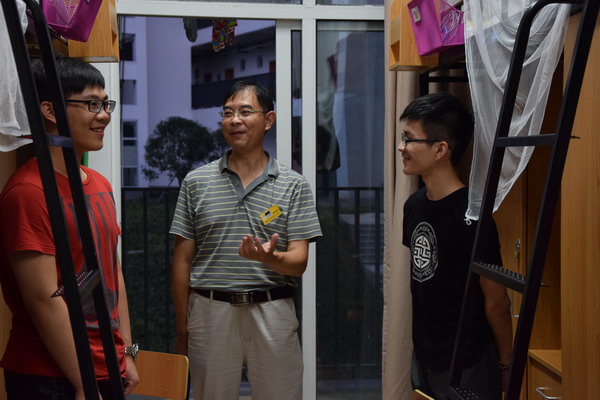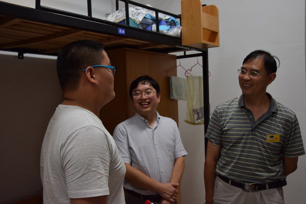 晚上6点,院长刘士旺、党委书记范伟刚、副书记葛龙威一行,带领辅导员、助班等走访新生宿舍看望新同学。学院领导每来到一个新生宿舍,都与新生进行亲切交谈,首先祝贺他们考上大学,其次欢迎他们加盟学院大家庭,为学院的发展建设带来新鲜力量。每到一处,学院领导都关心新生的生活及学习,希望新同学尽快熟悉和适应大学生活,树立远大目标,实现人生价值。