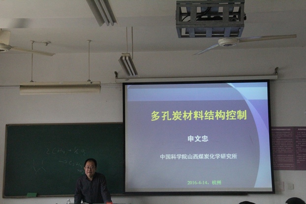 2016年4月14日上午,中国科学院山西煤炭化学研究所煤转化国家重点实验室申文忠研究员来访我校省2011协同创新中心和省重点实验室,并在三实讲坛作题为“多孔炭材料结构控制”的专题报告。省2011协同创新中心和省重点实验室相关教授博士、本科生和研究生参加了报告会。申文忠研究员介绍了生物质基多孔炭材料制备以及结构控制,并对多孔碳材料结构和性能的关系进行了详细阐述,与会师生就相关问题与申文忠研究员进行了交流。