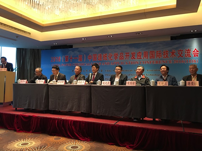 我校与中国造纸化学品工业协会、浙江理工大学等单位共同举办的“‘2016(第十一届)中国造纸化学品开发应用国际技术交流会”于2016年4月26-28日在浙江饭店顺利召开。会议采取专题报告和论文发表相结合的形式,解读造纸行业和造纸化学品行业“十三五”规划,介绍国内外造纸化学品行业取得的最新成就与进展。来自国内外的160余名代表出席了会议,听取了由国家造纸化学品工程技术研究中心主任、杭州市化工研究院院长姚献平、加拿大新布朗瑞克大学教授倪永浩、台湾大叶大学教授彭元兴、华南理工大学教授何北海、齐鲁工业大学教授刘温霞、青岛科技大学教授陈夫山、南京林业大学教授戴红旗、陕西科技大学教授王海毅、浙江理工大学教授夏新兴、天津科技大学副教授刘泽华、美国巴克曼实验室亚太区经理廖金华、芬兰凯米拉香港公司全球业务开发主任Mats Berg、韩国润纸化学株式会社社长安国宪、杭州杭化哈利玛化工有限公司副总经理吕英杰、山东兖州熙来淀粉化学品公司总经理吕志红、寿光市荣马化工有限公司总经理邢仁卫等贡献的18个精彩的专题报告与技术报告。会议在广泛的范围内就造纸化学品新产品、新技术的开发及在造纸工业的应用开展交流与合作,促进造纸化学品在纸厂的应用。