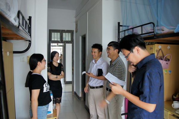 9月10日,第32个教师节来临之际,我院迎来了2016级研究生新生,校党委书记王建华教授、校长叶高翔教授和相关职能部门领导来到研究生宿舍,慰问研究生新同学,鼓励研究生同学再接再厉。学院刘士旺院长、王永江副院长在办公室赖红武主任和姚刚老师的陪同下,走访了我院研究生新生宿舍,欢迎研究生新同学,希望研究生新同学尽快熟悉环境、快速进入研究生学习状态、科学规划研究生期间的学习和生活,实现个人梦想。