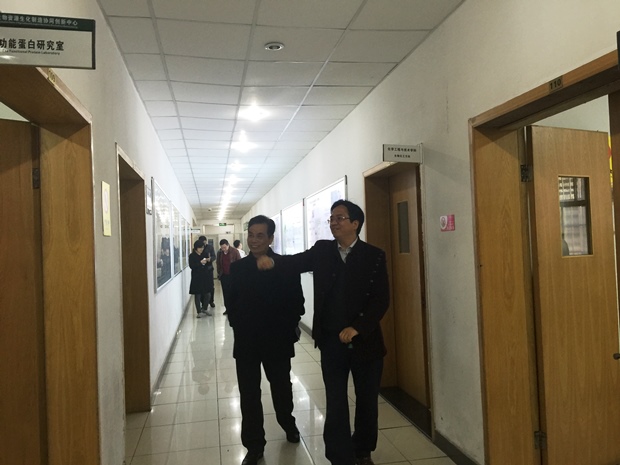 12月6日,省饮料工业协会负责人王顺成一行来访我校省农业生物资源生化制造协同创新中心,我校党委委员、省2011协同创新中心主任毛建卫教授,中心办公室主任姚刚老师等陪同考察了省农产品化学与生物加工技术重点实验室,双方进行了合作交流。