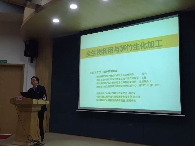 我校党委委员、省农业生物资源生化制造协同创新中心主任、省食品学会副理事长毛建卫教授在大会作“竹源食品加工与全生物利用”主题学术报告,沙如意博士主持了研究生分论坛,肖竹钱老师在“现代食品加工与安全”分论坛作了“生物炼制法制备低碳多元醇的研究”的报告,我院研究生王珍珍、程勇杰在研究生论坛上分别作了“食品植物酵素中耐高渗酵母菌的分离鉴定及生长特性研究”和“特色资源植物酵素活性成分与功能相关性研究”的报告,生化/轻工学院一批教授、博士和研究生参会。