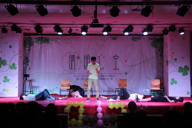 6月4日18:30,由浙江工业大学学工部主办的第十二届小和山高教园区心理剧联合汇演在浙工大健行B楼一楼报告厅举办。我院制药专业团队作为我校心理情景剧一等奖获得者代表我校参加了此次汇演。本次汇演以“晴朗心空”为主题,汇集了浙江工业大学、浙江科技学院、浙江长征职业技术学院、浙江外国语学院和浙江特殊教育职业学院五个学校的五个代表剧。