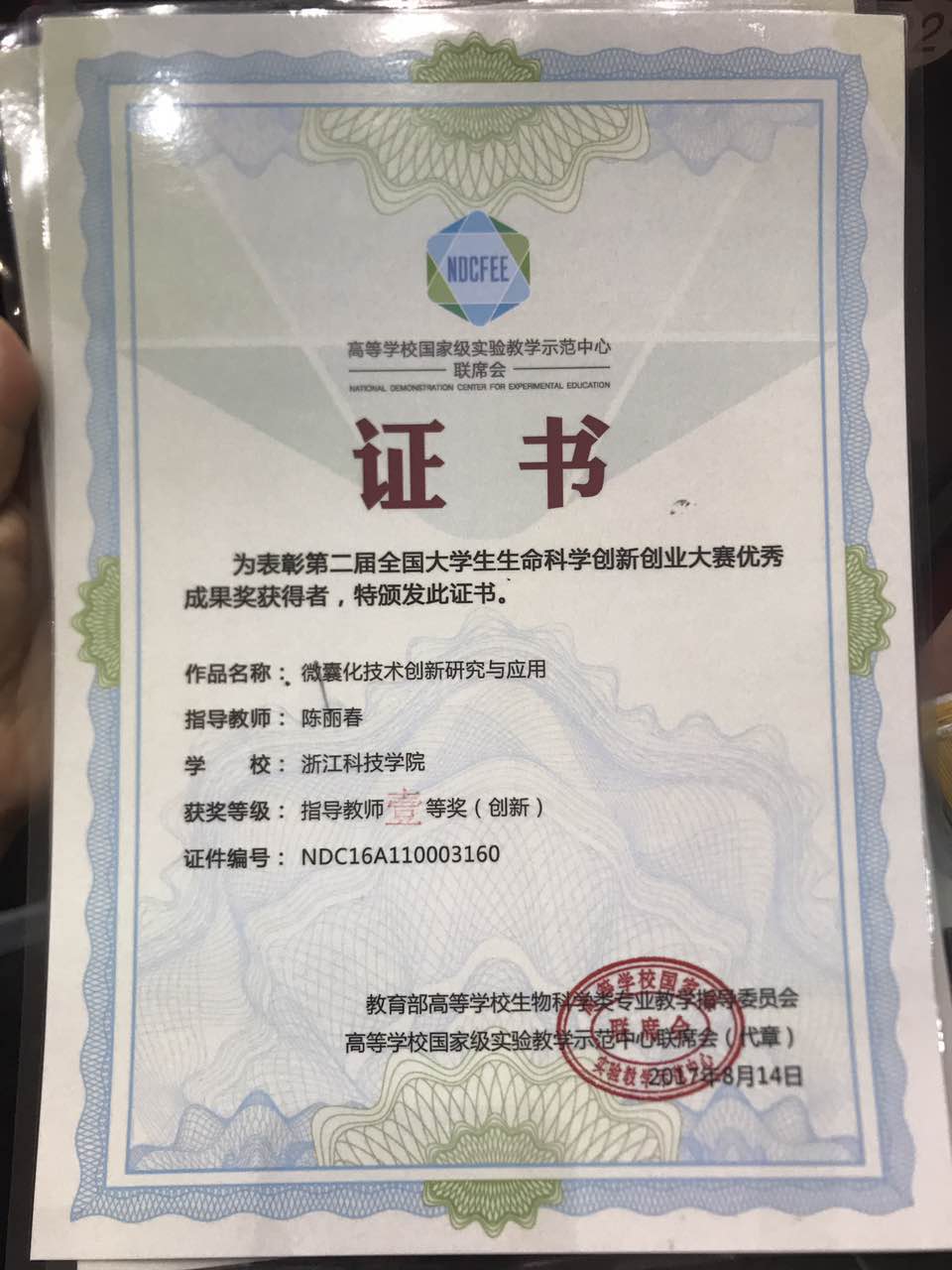 2017年8月12至14日,第二届全国大学生生命科学创新创业大赛决赛在兰州举行。我院项目荣获大赛一等奖,指导老师陈丽春副教授获一等奖指导教师奖,这是我院浙江省一流学科生物工程在生命科学领域人才培养的新突破。