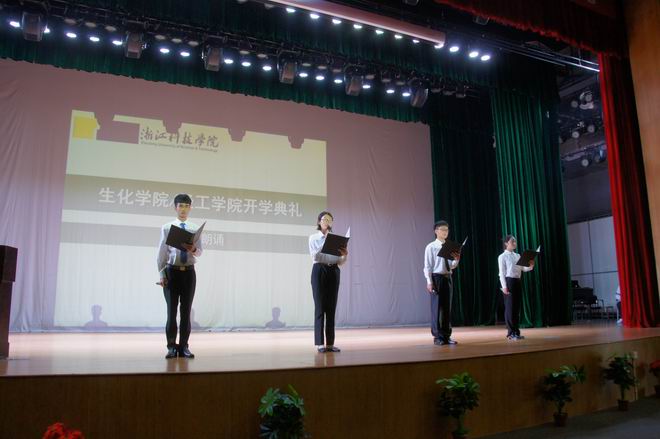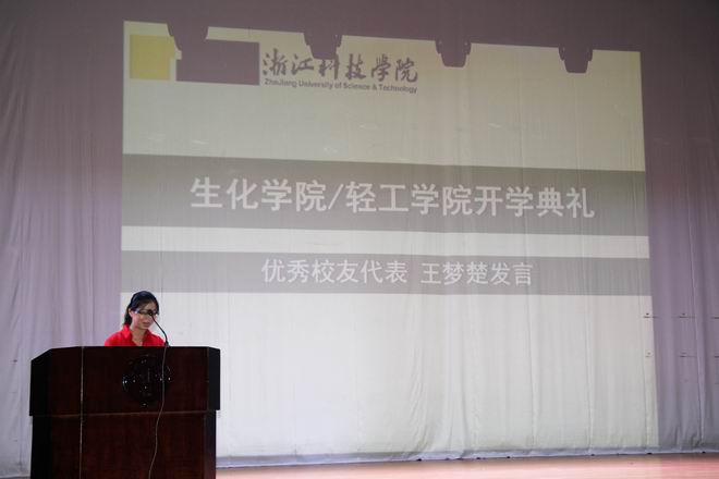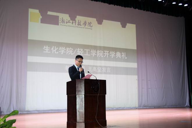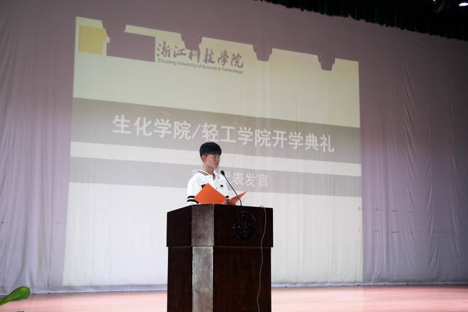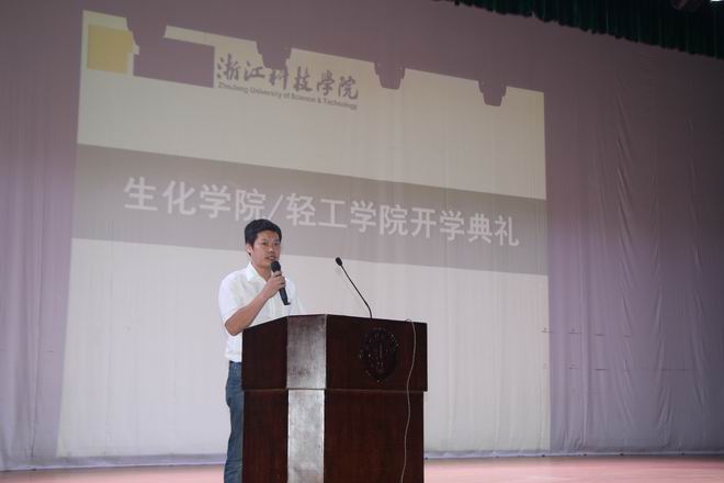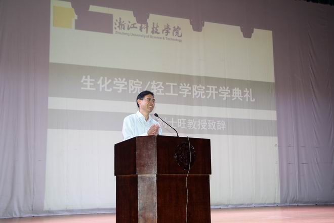 刘士旺院长在致辞中向加入生化轻工学院大家庭的新生表示热烈的欢迎和祝贺,他详细介绍了生化轻工学院的发展历史、师资队伍、学科平台、建设成就、学院学风、专业教育、科研团队以及多年来的科研成果,也向同学们提出了新学期的新目标,希望同学们能够积极融入到生化轻工学院的建设中。新的学期,新的希望,生化轻工学院拥有我校唯一的浙江省2011协同创新中心、浙江省重点实验室、浙江省一流学科、浙江省重点科技创新团队和浙江省重点学科,拥有国家级特色专业、卓越计划专业、优势专业和新兴特色专业,拥有稳定的大学生实习基地和创新创业氛围,化工专业通过了国家工程教育专业认证,学生竞赛成绩优异,学院建设和发展迈向一个新的征程。最后,他希望同学们能够珍惜大学时光,科学规划大学四年目标,有理想有抱负,脚踏实地地做人、做事、做学问,把自己培养成为优秀的三实人才,学院将为同学们成长成才提供保障,为大家筑新风、创未来,刘院长希望2017级新同学用实际行动成为我校实现大学梦的建设者、奉献者和见证者。
