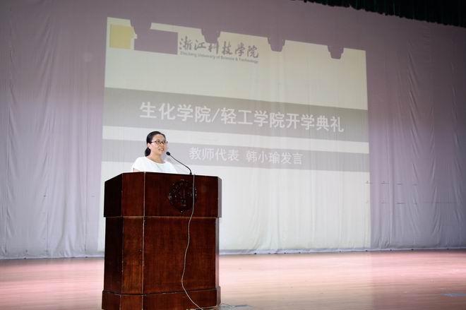 教师代表韩小瑜老师随后发言,她提出大学是人生的新起点,是人生中最美好的时光。她围绕“把握时间”以及“珍惜大学生活”两个重点,希望同学们能够抓紧大学短暂的时光,尽快适应并丰富大学生活,要充分意识到学习的重要性,有理想,有目标,多方面培养自身能力,成为社会有用人才。