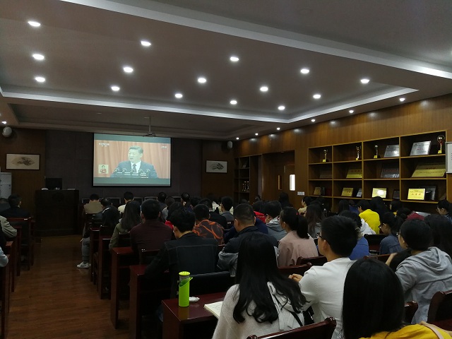 按照学校党委部署,结合学院实际情况,10月18日上午8:50,生化轻工学院在C2-530集中组织收看党的十九大开幕会盛况。百余名师生党员热情参与,大家认真收看和学习了习近平总书记在党的十九大开幕会上的重要讲话,并进行了热烈的讨论。因工作等原因不能参加集中收看学习的党员和普通师生,采取了多种方式,及时收看了盛会重播和媒体报道,微信、QQ群成为了大家热烈讨论的阵地。