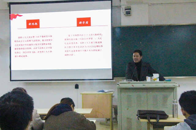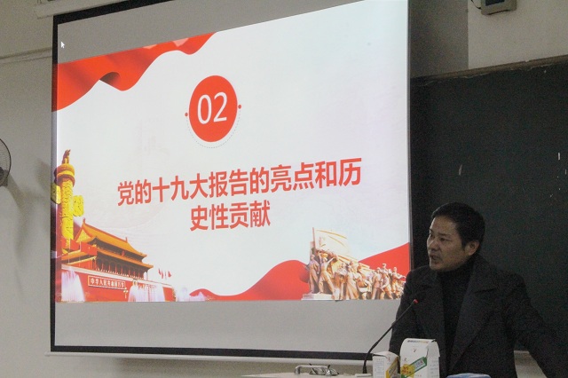 第一节党课范伟刚书记以“新时代,要有新气象,更要有新作为”为主题开讲,旨在让同学们学习贯彻党的十九大精神。范书记以“深刻把握新时代的历史方位”、“党的十九大报告的亮点和历史性贡献”、“精准把握党的十九大报告的核心要义”、“新时代,要有新气象,更要有新作为”四个板块阐释十九大精神。国家主席习近平说,中国将在二十一世纪中叶建成社会主义现代化强国,现今的学子将会在这段发展过程中承担重大的责任,成为社会的中流砥柱。如果铁肩是责任担当,妙手就是成事能力。因此学子既要明确“干与不干”的态度问题,更要解决“干好干坏”的能力问题。在范书记讲课期间,同学们认真的听讲并不停地在做详细的笔记,展现新一辈积极学习、一心向党的认真态度。