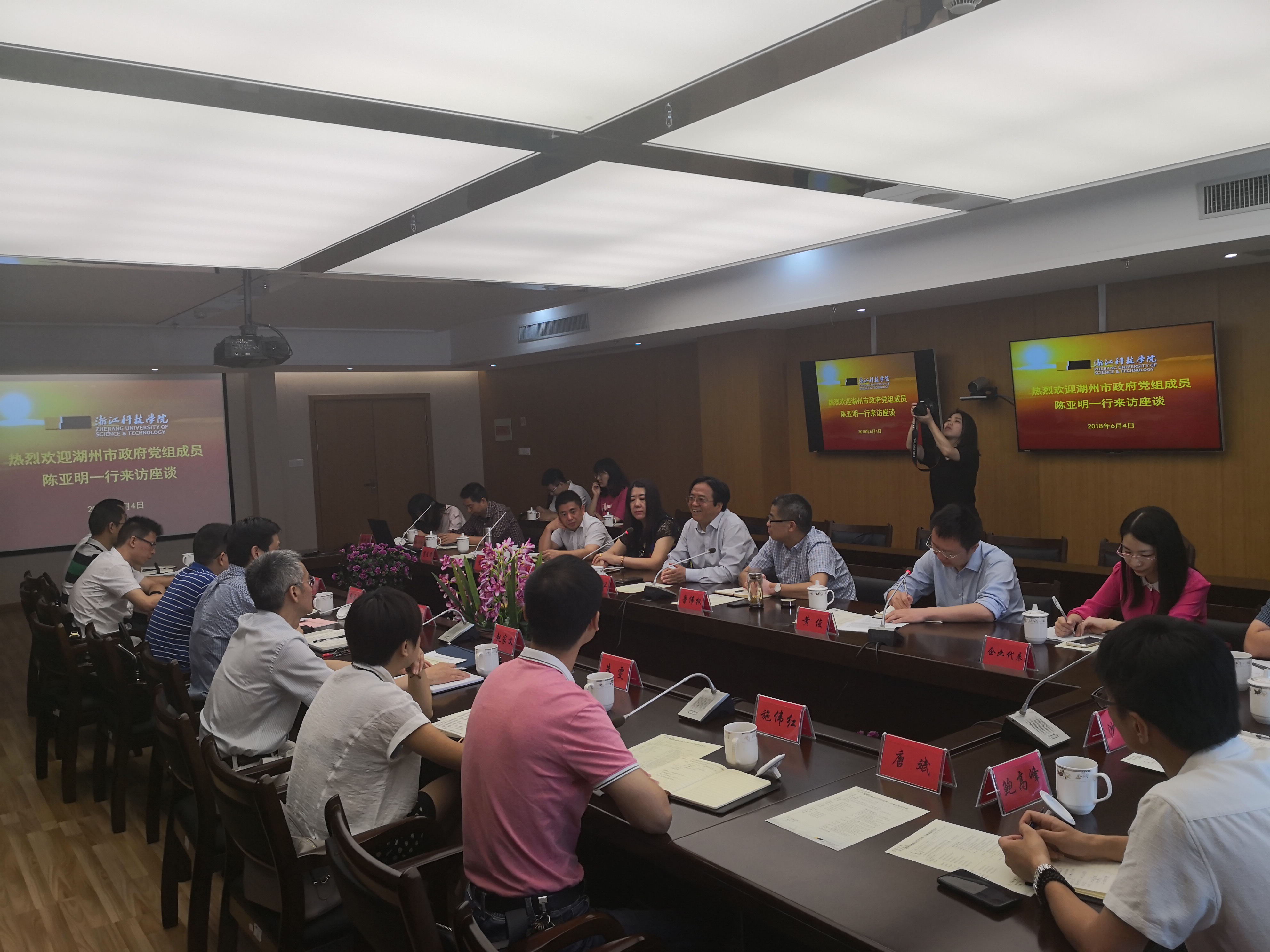 学校相关职能部门、二级学院负责人与湖州市政府办、市经信委、市科技局、市教育局、安吉县政府办、县经信委、县科技局负责人参加相关活动。