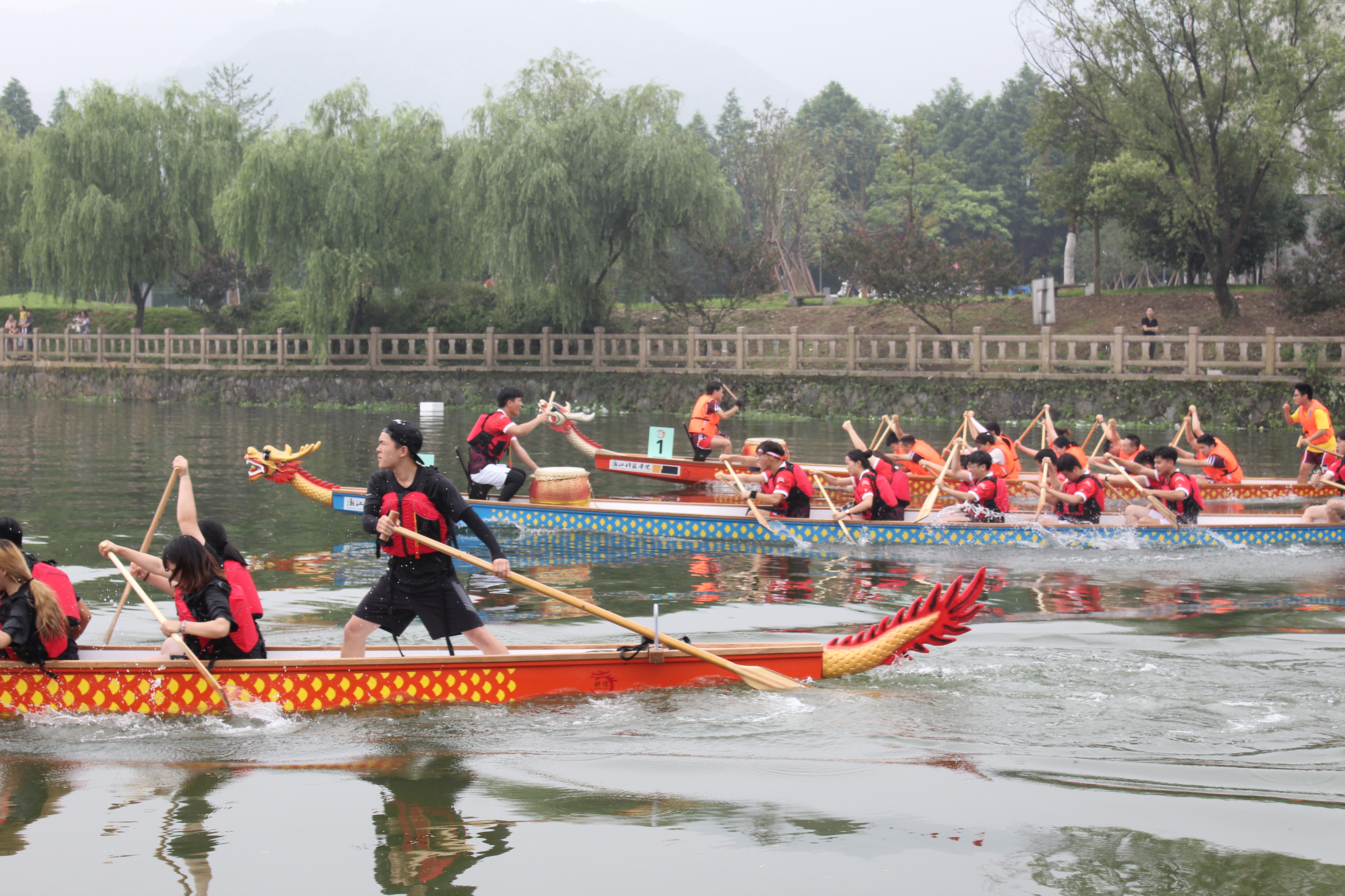 本次比赛分三轮进行。第一轮随着裁判的一声枪响,龙舟伴随着“咚咚”的鼓声在水面穿行,我院学子们一鼓作气,以绝对实力轻松晋级第二轮。在第二轮比赛中,他们整齐划一的姿势和充满斗志的口号再次展现了三实学子们斗志昂扬、积极向上的精神风貌,但最终因微小差距遗憾止步第二轮,未能晋级最终的冠军争夺战。