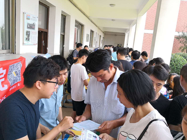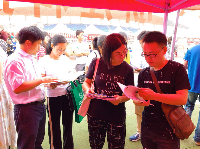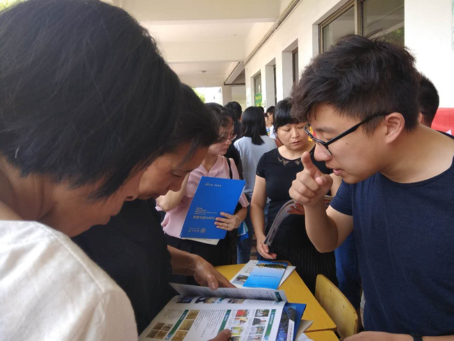 早上8点未到,现场已是人头攒动。由于我院学科优势明显,专业特点显著,受到了不少考生和家长的青睐。程海丰副书记结合我院专业特点向前来咨询的考生以及家长进行了详尽解答,表示往年高校录取分数线可以作为参考,“冲一冲、稳一稳、保一保”的办法仍旧受用;辅导员蔡瑞康向考生家长介绍了学校、学院的优势和特色专业;肖竹钱和蔡海莺两位专业老师用专业知识使咨询者更加详细具体的了解了生化学院的特色。
