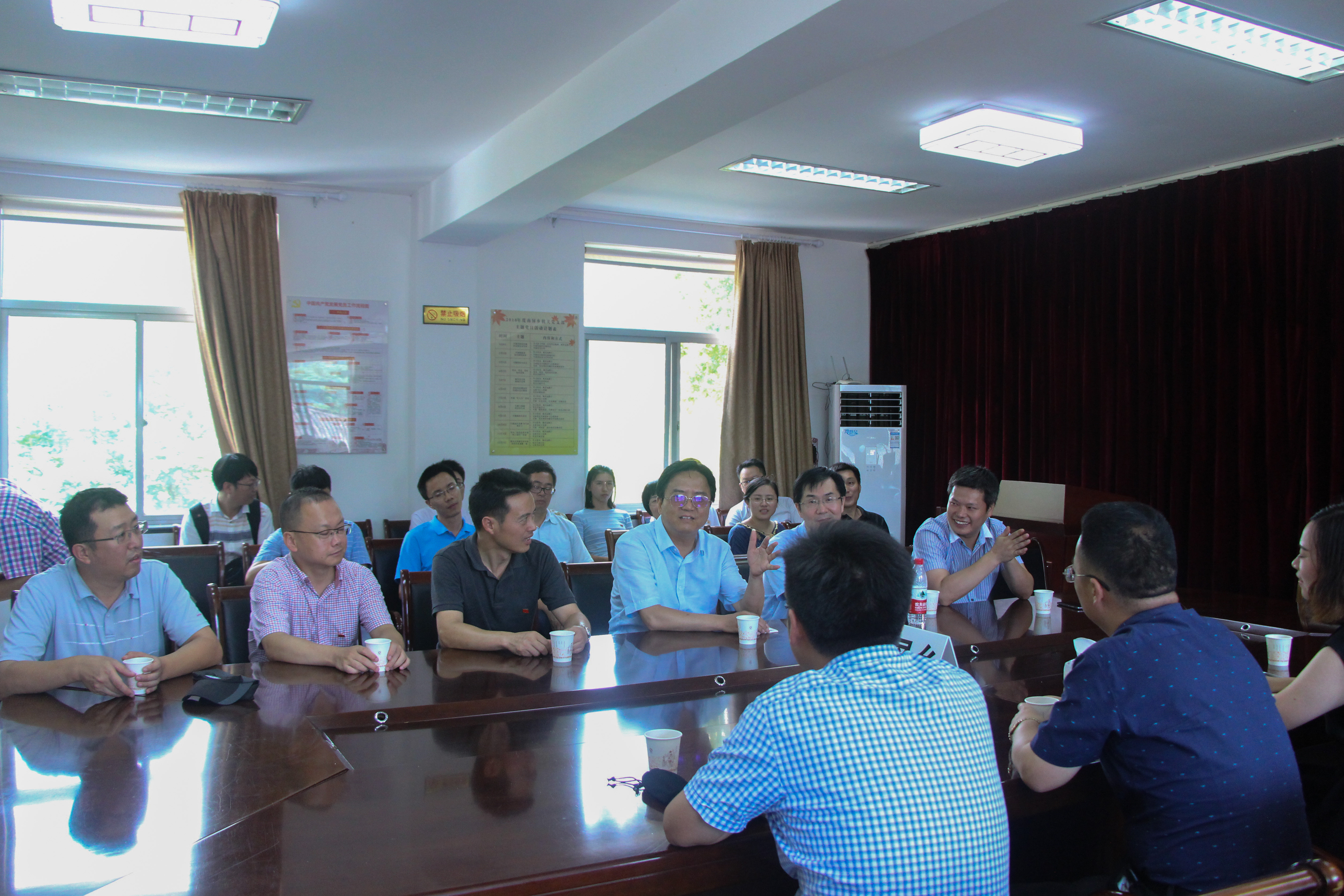 下午2时,浙江科技学院生化学院党委书记毛建卫、院长王永江、院党委副书记程海丰、副院长吴元锋、副院长刘赫扬带领我院各教工党支部书记、各系部中心主任、研究生支部书记与南屏乡农业产业协会党支部相关人员于南屏乡政府会议室召开校地科技对接会。