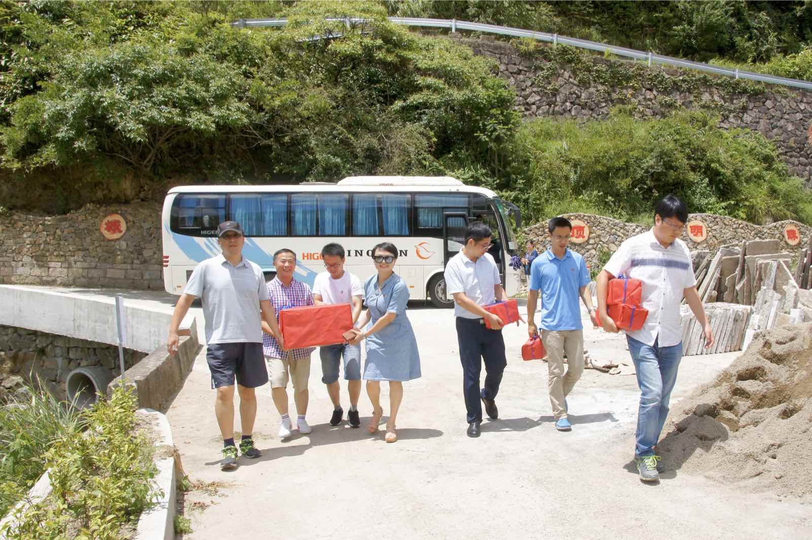7月20日上午7点30分,生化学院院长王永江老师、副院长吴元锋老师和刘赫扬老师、各专业系主任和党支部书记等党员博士一行20余人赴天台县石梁镇双溪村进行文化下乡活动,给乡文化阅览室赠送书籍。