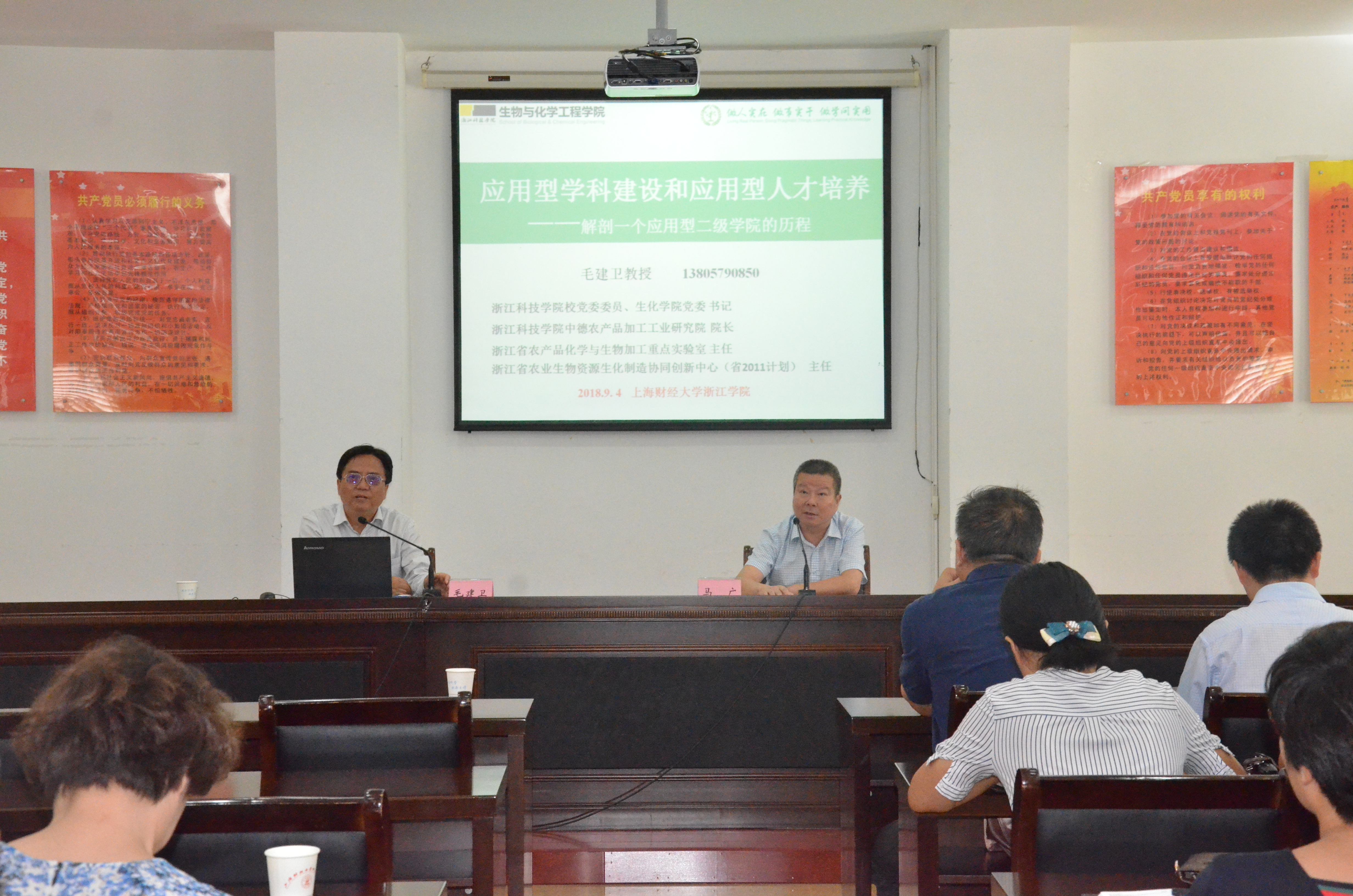 9月4日,毛建卫老师受上海财经大学浙江学院邀请,在该校暑期中层干部读书会上为全校干部作两个半小时的专场报告,报告主题为“应用型学科建设与应用型人才培养”,该校校党委书记马广教授主持报告会。