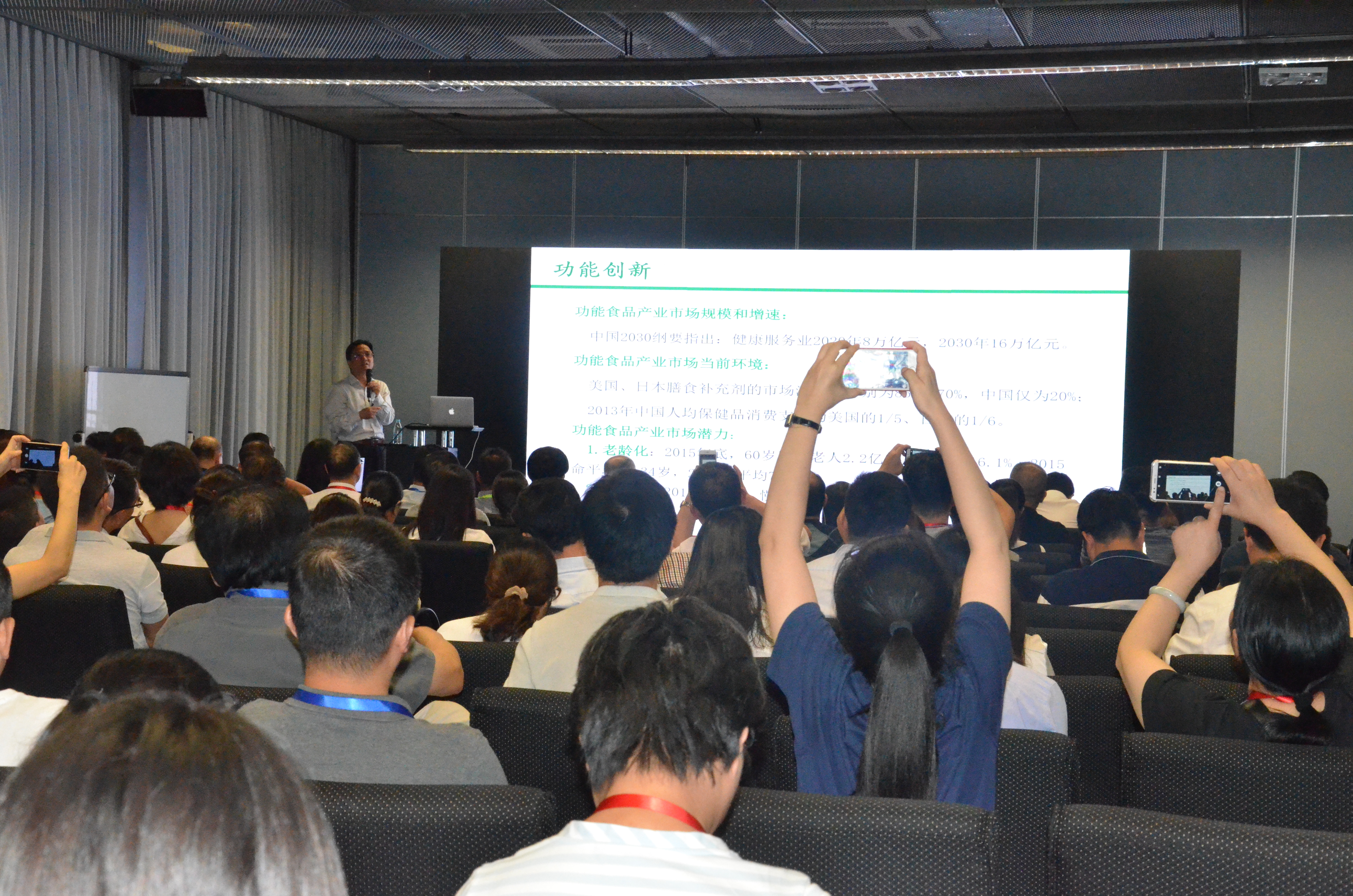 9月5日,浙江科技学院与中国生物发酵产业协会主办,中国生物发酵产业协会生物资源提取与应用分会、上海市与浙江省的食品添加剂及配料行业协会、我校省2011协同创新中心承办,中国生物工程学会生物资源专委会、中国食品工业协会发酵工程研究会、国家酵素产业技术创新战略联盟为指导单位,"2018第二届天然功能性食品配料与添加剂创新论坛"在上海新国际博览中心报告厅召开,毛建卫教授主持论坛并作开场主题报告,院长王永江教授、副院长刘赫扬博士等30余名我院教师、研究生参加了论坛。近200名学者、企业家、技术人员等参加了论坛。