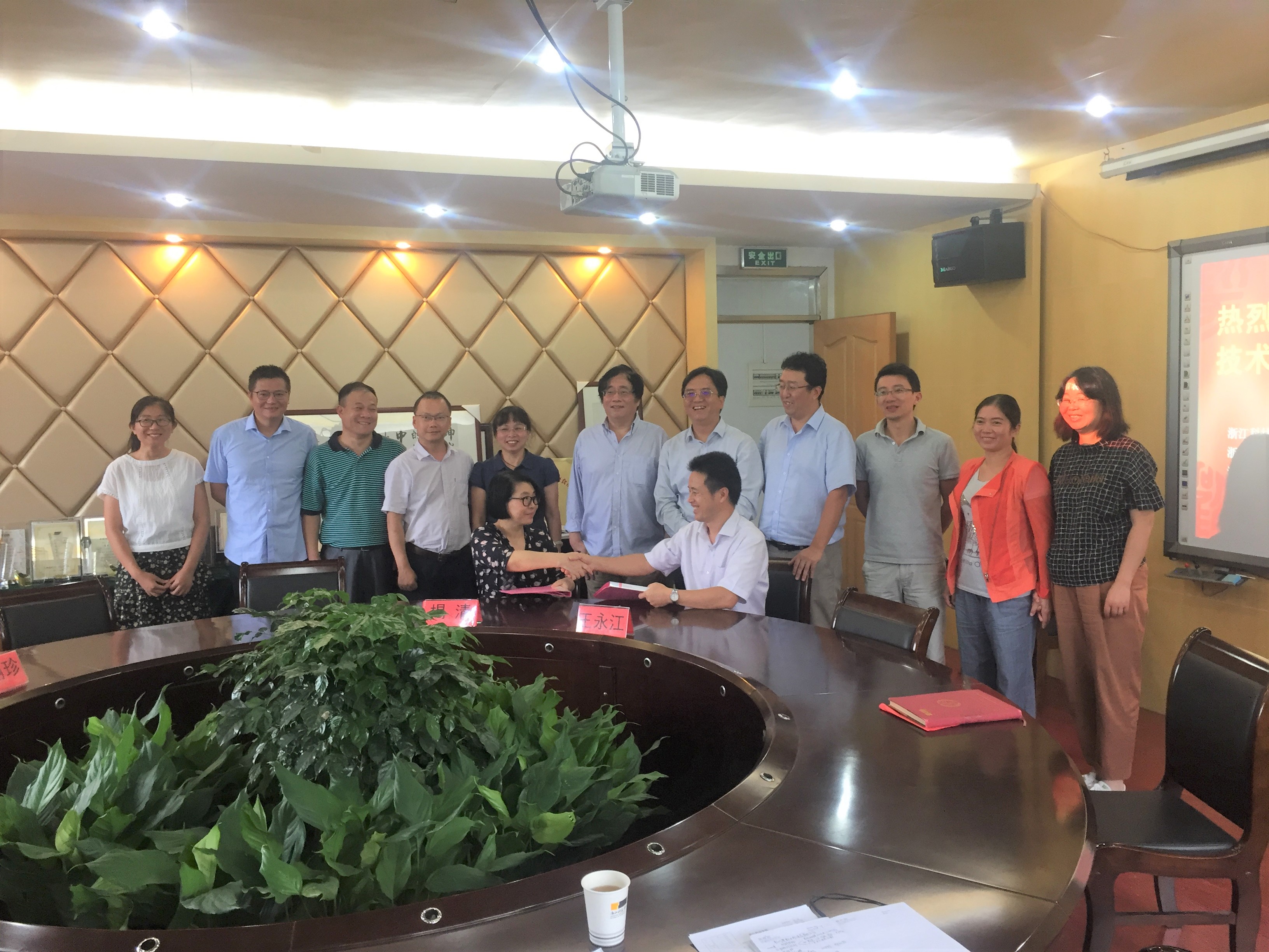 9月14日 海创园澳默医药股份董事长、总裁等一行来访,毛建卫教授接待企业家一行,院长王永江和总裁签署了合作协议,副