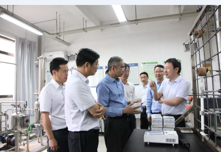 院长王永江介绍了液态饮料、超临界萃取、超声波提取等生产线、恒温荧光检测仪等实验室。