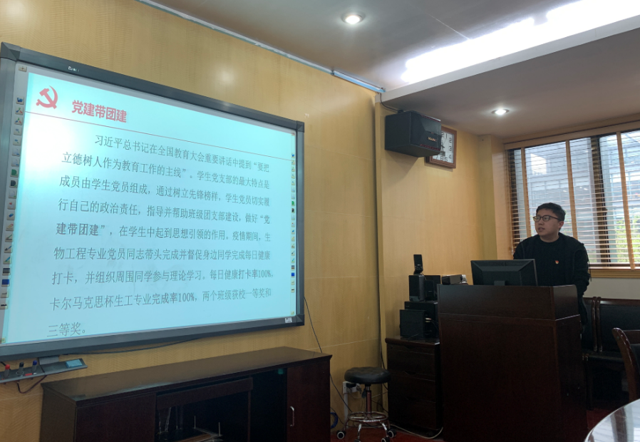 叶春林、袁海娜、盖希坤、祝巨等4位教师党支部书记和蔡瑞康、范俊强、程勇杰、王海芳、范玉凤、方乐成等6位学生党支部书记分别从支部基本情况、政治学习、组织建设、主要工作、存在不足和下一步举措等方面进行了述职汇报。
