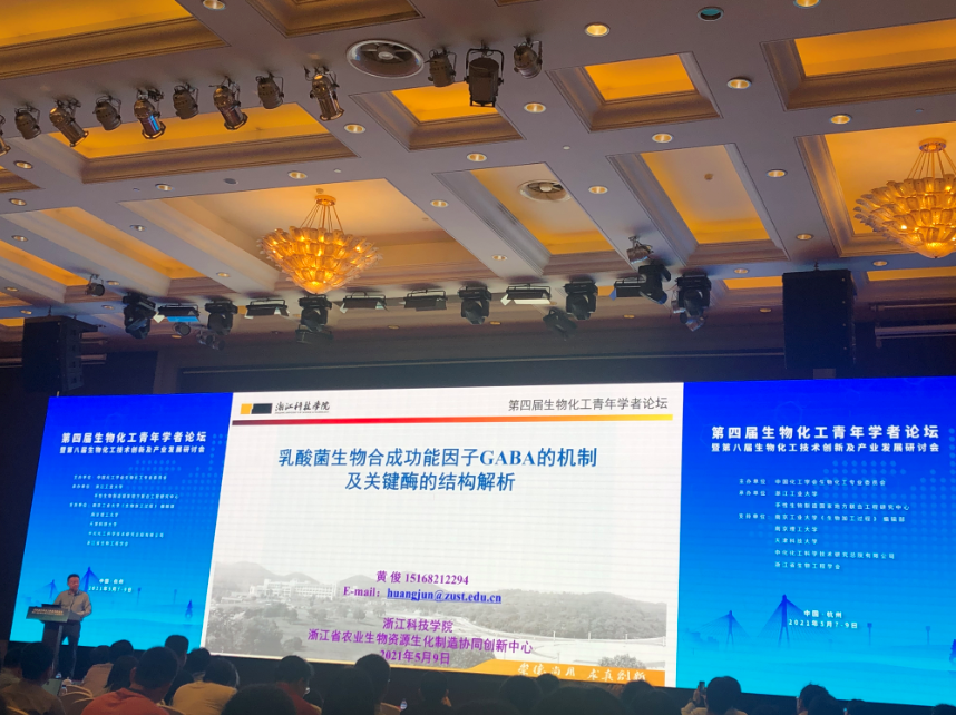 生物化工青年学者论坛是生物化工领域内最重要的学术活动,本届会议共有来自清华大学、浙江大学、天津大学、上海交通大学、大连理工大学和南京大学等单位600余名师生代表和企业代表参加,会议规模创历届之最。院长黄俊应邀做了题为“乳酸菌生物合成功能因子GABA的机制及关键酶的结构解析”的特邀报告,并带领我院沙如意、吕常江、樊芳芳等老师与领域内专家学者进行了深入交流和探讨,建立了良好的学术关系,提升了我校在生物化工领域的知名度。(生物与医药研究所 吕常江)