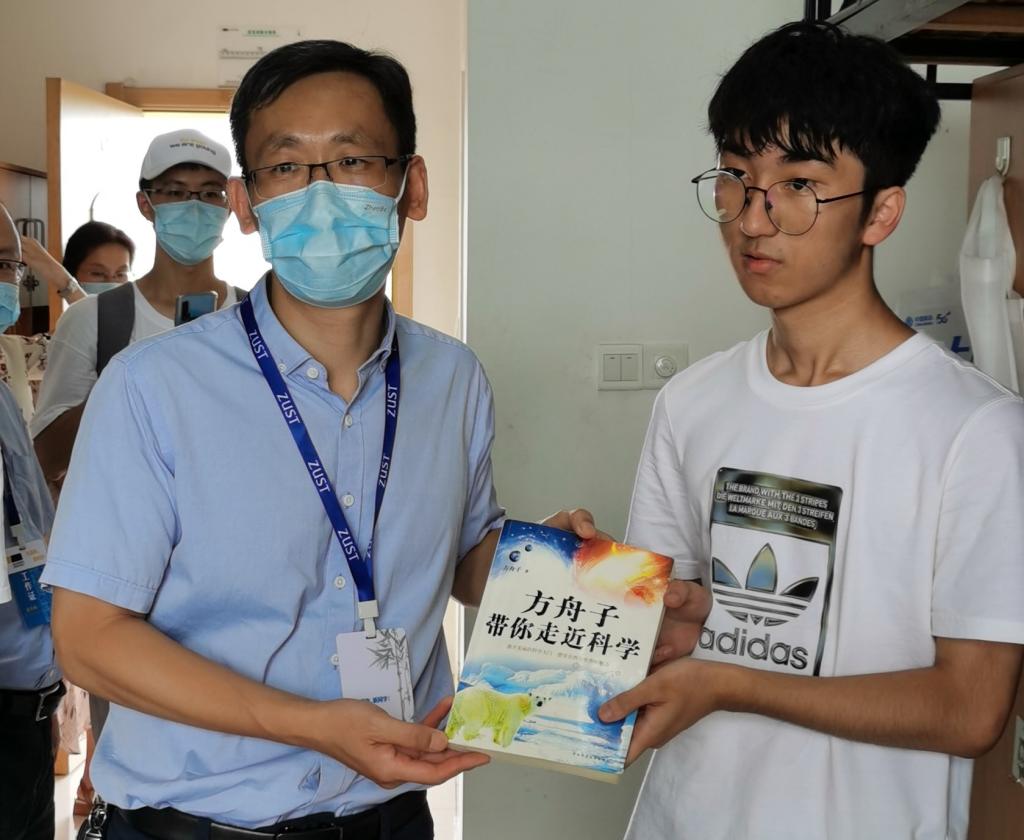 学院领导来到宿舍,亲切问候了同学们对新校园新环境的感受,嘱咐同学们在校期间要注意安全,努力调整好自己的节奏,尽快适应大学生活,找到适合自己的目标和方向。走访期间,黄俊院长和路胜利书记提前了解到有同学在当天过生日,特意准备书籍赠予同学,并希望同学学习后能与舍友分享交流,寄托了学院对新生的祝福和期望。许多新同学描述了自己对于大学生活的憧憬和期待,他们纷纷表示,浙科是人生中一个新的起点,希望在这里放飞梦想。