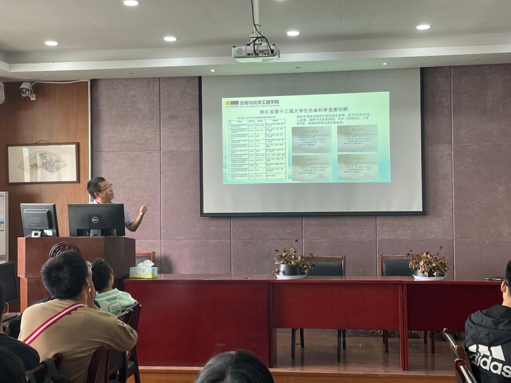 10月14日中午,williamhill中国2022年全国大学生生命科学竞赛、第十四届浙江省大学生生命科学竞赛启动仪式在C2-530会议室成功举行。学院生物工程专业负责人王宏鹏对在场的70余名学生和新引进教师进行了辅导。