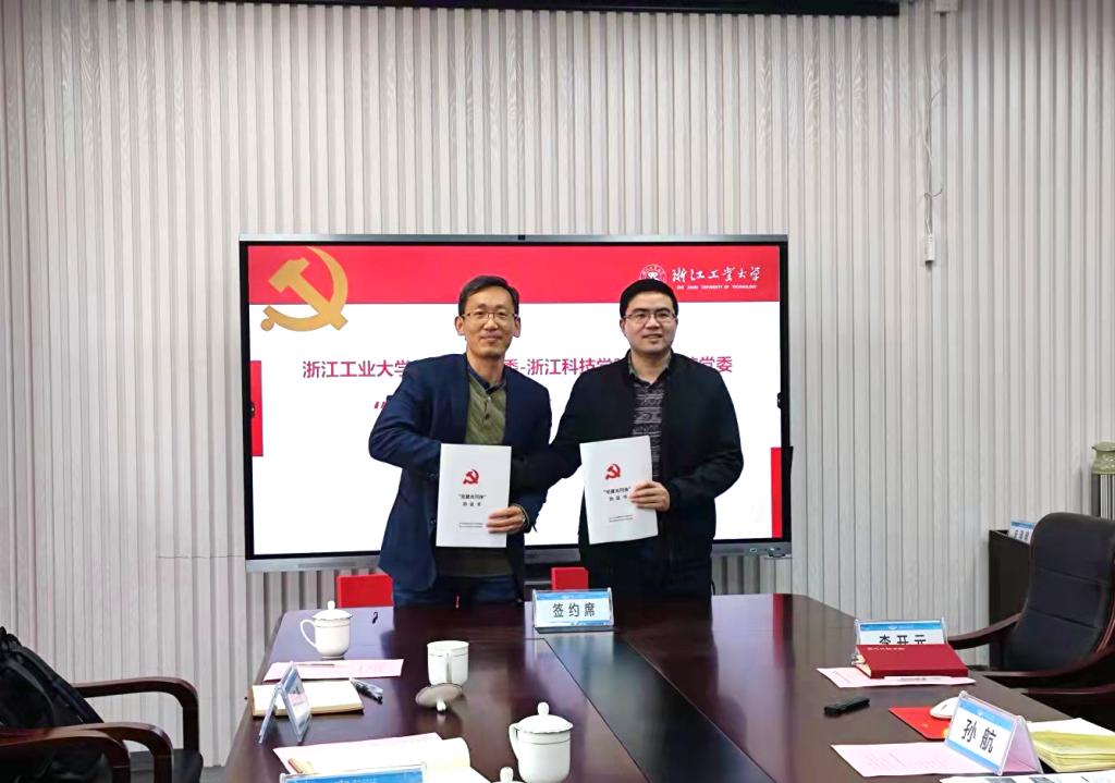 会上,双方签订了“浙江科技学院生化学院党委-浙江工业大学材料科学与工程学院党委‘党建共同体’共建协议”,将在支部互联、教师互访、学生联培等方面开展结对联建工作。