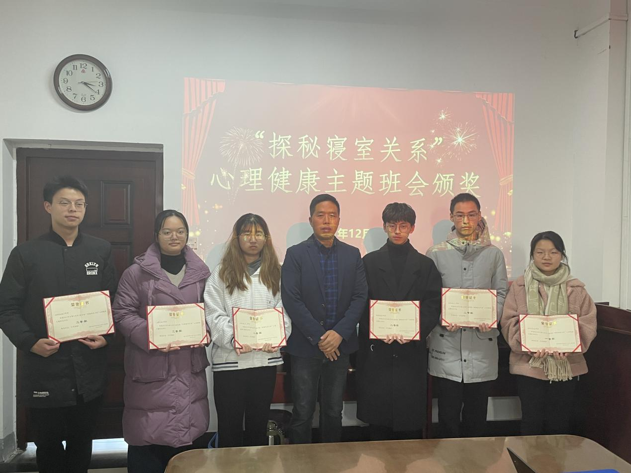 在此次心理安全评比中,共有6个班级获奖:一等奖制药191,二等奖生工192,食品202,生工201,三等奖制药202,材料192。12月9日学院举行了颁奖典礼,学院党委副书记王学宏为其班级代表进行了颁奖,并对这些班级在今后的表现中提出了更高的要求和期望。(学工办 王海芳)