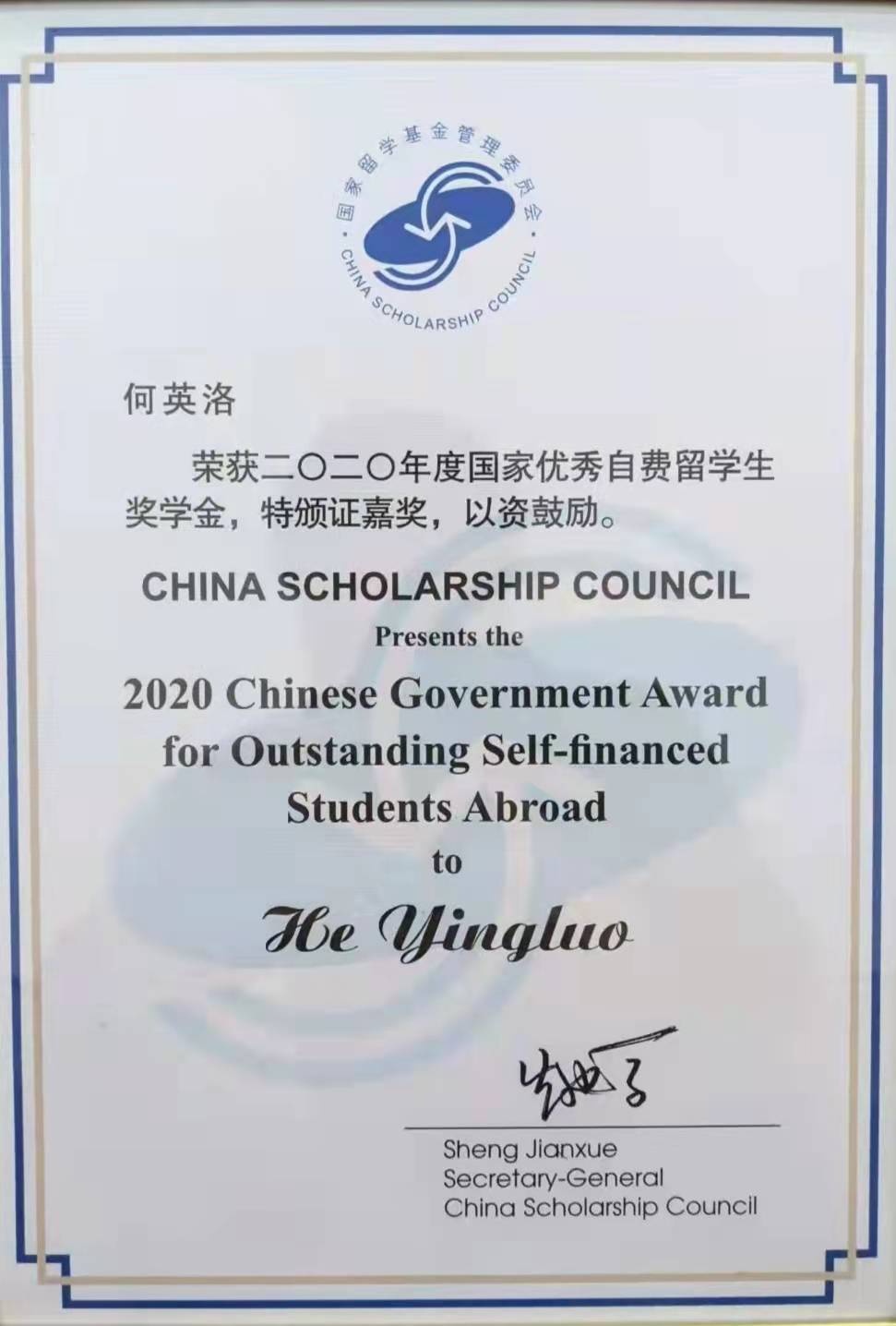 何英洛自进入我院学习以来,一直刻苦学习,扎实基础,提升自我。在日留学期间,他一直铭记和践行着我院“三实”育人文化。“工作着是美丽的,思想着是快乐的,创造着是幸福的”话语一直鼓励、驱动着他不断学习和进步,也如愿荣获“国家优秀自费留学生奖学金”。