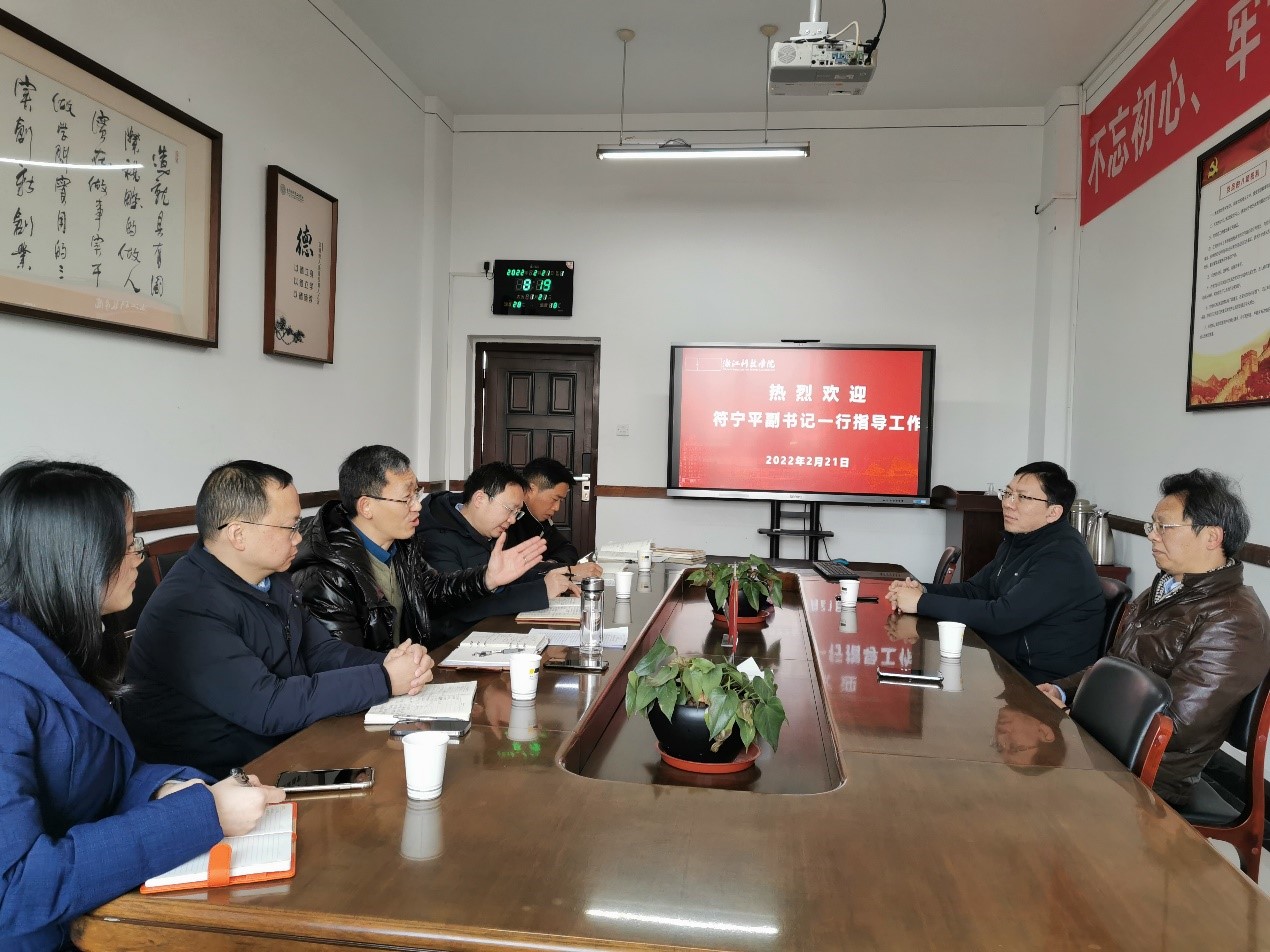 2月21日,新学期上课第一天,校党委副书记符宁平来我院走访指导工作,校党委委员、组织部部长李其朋陪同。学院党政班子成员参加了会议。
