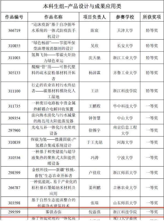 8月16日至17日,首届大学生低碳循环科技创新大赛在杭州举行。我院项目《雾锁赤弥》荣获大赛全国一等奖。