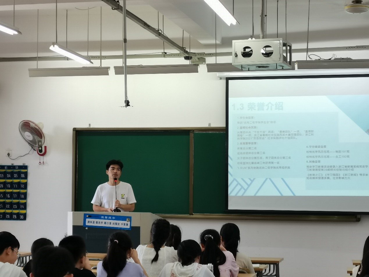 学工办辅导员首先对各位新同学的到来表示衷心的祝贺和热烈的欢迎,并从安全、党建、团学、竞赛、综合测评五个方面为新同学们进行了讲解,号召同学们对自己大学四年进行合理规划,在完成学业要求的同时积极参与学校举办的各项活动,成为一个德智体美劳全面发展的“三实”学子。