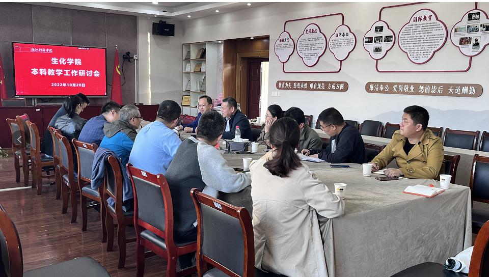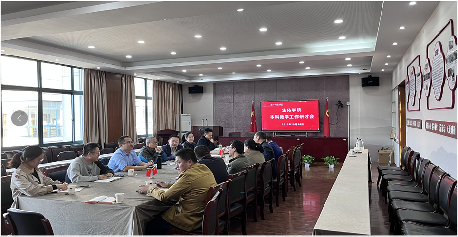 10月20日下午,生化学院召开本科教学工作研讨会。会议由朱瑞瑜副院长主持,黄俊院长、各专业负责人、系部主任及学院教学管理人员参加会议。