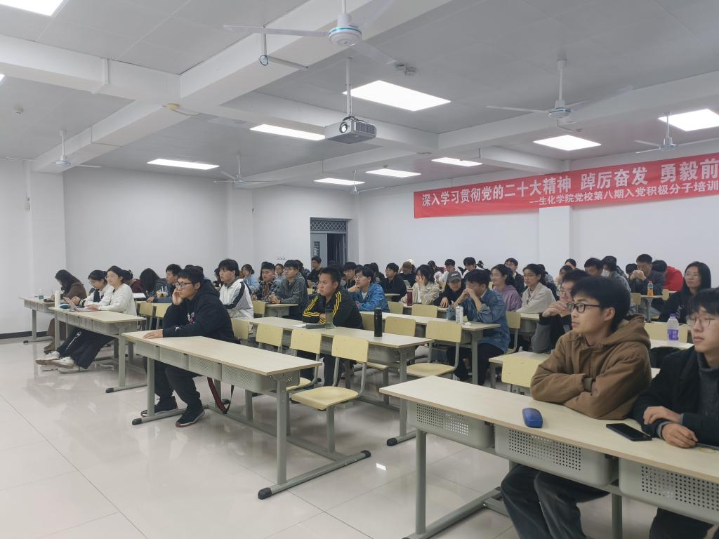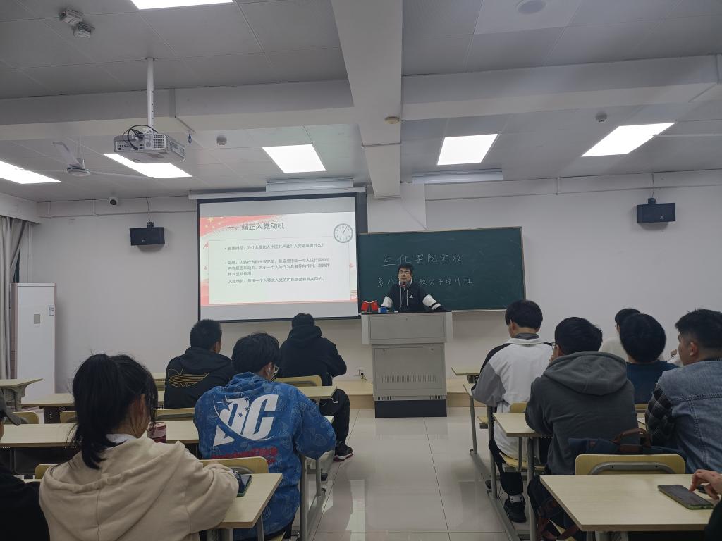 10月29日18:00,生化学院党校第八期入党积极分子培训班第五课在A2-318进行。由化学工程与工艺专升本党支部书记陈滔老师担任主讲,百余名党校学员认真参加了课程学习。