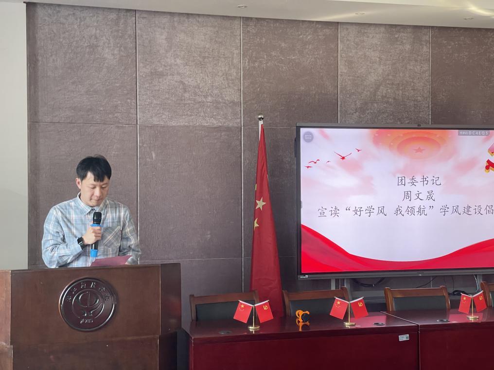 团委书记周文晟宣读了“好学风、我领航”学风建设倡议书, 并告诫在座的学生党员同志要严于律己、以身作则。
