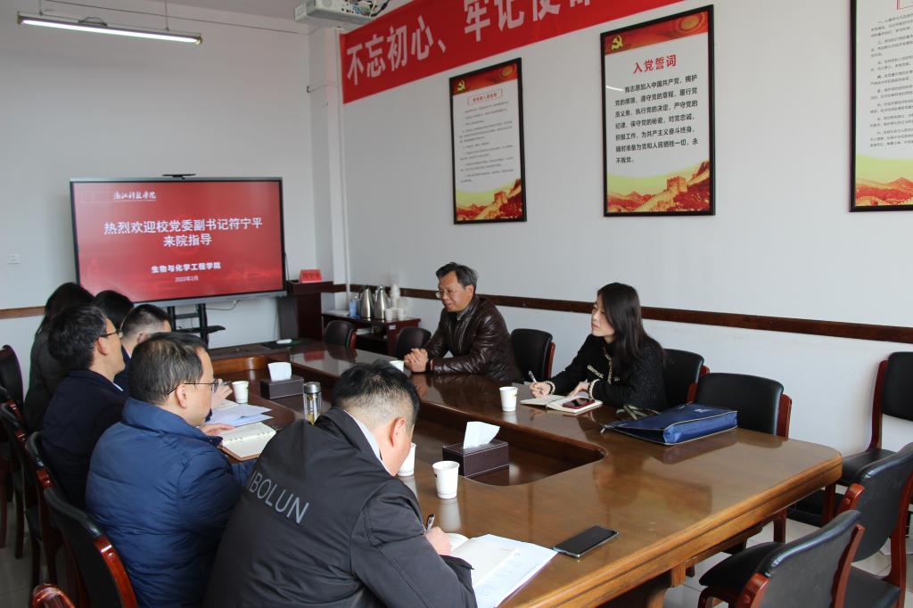 2月27日,新学期上课第一天,校党委副书记符宁平来我院走访指导工作,机关党委副书记(主持工作)徐丹凤陪同。学院党政班子成员参加了会议。