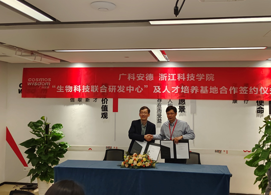 随后,双方举行了“生物科技联合研发中心”及人才培养基地合作签约仪式。